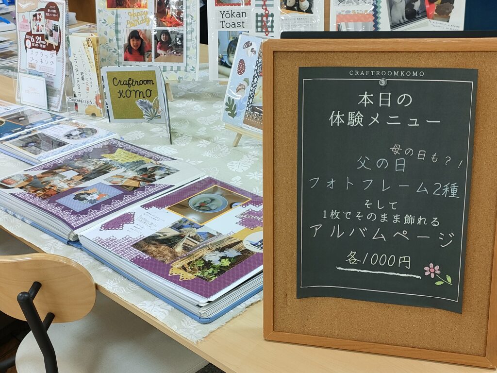 お時間がある方には体験会もお勧めしています。フォトフレームは15分ほど、アルバムページは30分ほどで完成しますよ。